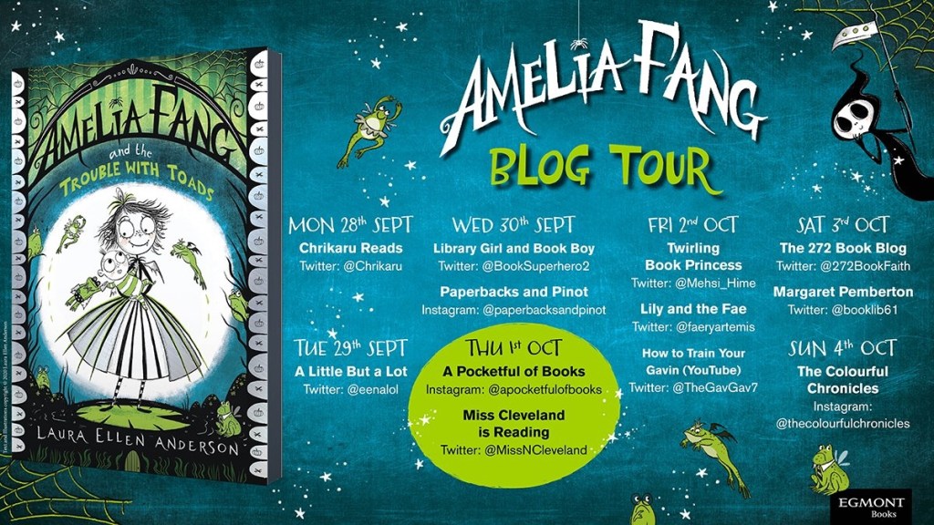 Amelia Fang And The Trouble With Toads is written and illustrated by Laura Ellen Anderson, and published by Egmont.